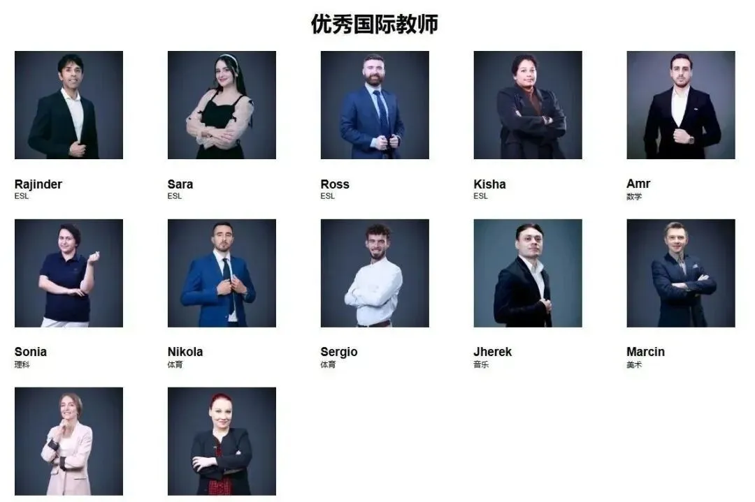 教师团队面向全球优选优聘,一线教师由中方特级教师、省市级骨干教师、国际教师、海归及双语教师及专业特长教师组成主要学科均由特级教师、省市级名师、学科带头人、省市优质课一等奖获得者和中高级教师领衔。