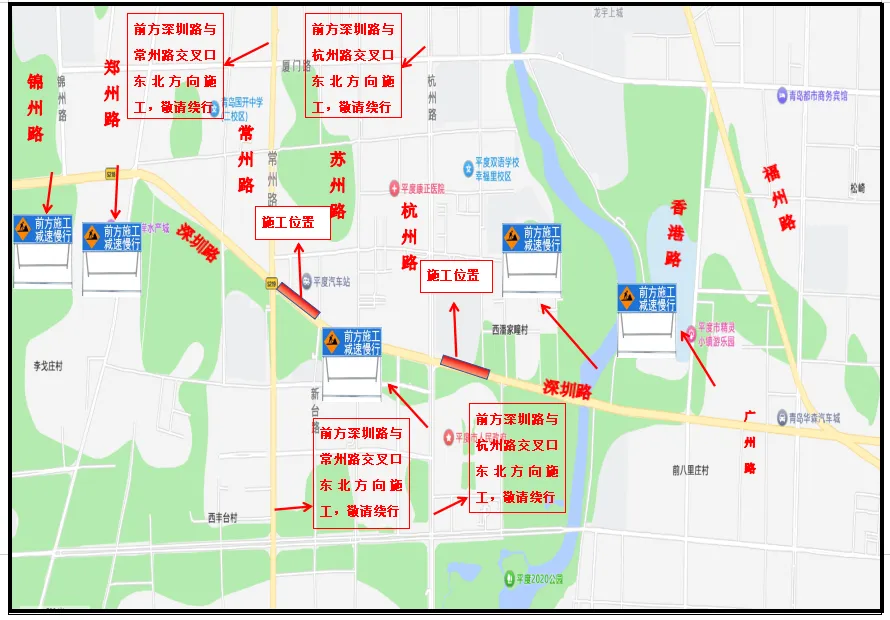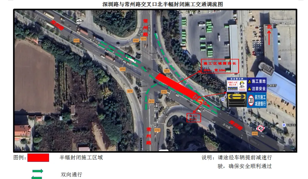 根据深圳路道路维修施工计划安排,近期需对深圳路与常州路、深圳路与杭州路交口进行半幅封闭施工。道路封闭时间为2026年4月10日至4月30日。