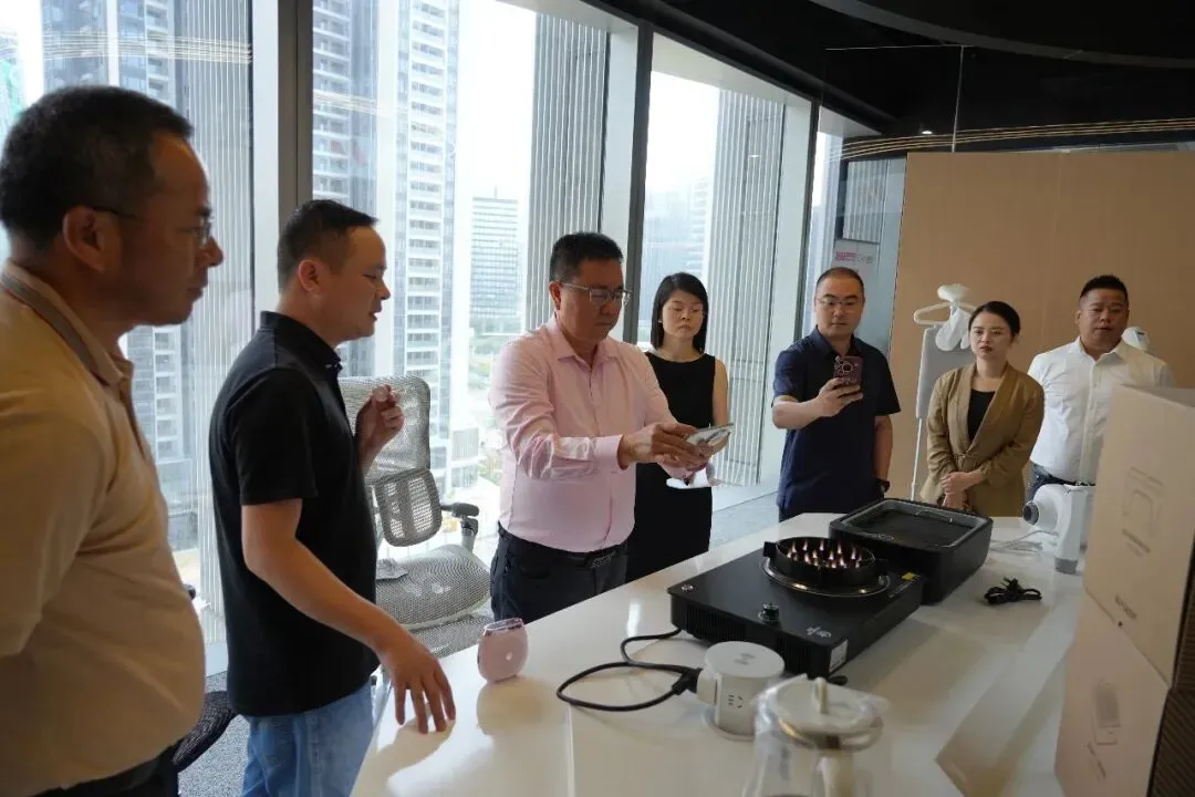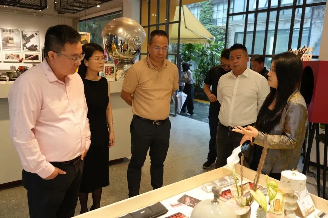 澄海区考察组前往深圳市宝安区文化体育产业协会,就2025年双方建立结对关系后进行回访交流,通过实地参观Lofree洛斐、笔下等宝安本土文创企业,深刻感受宝安文化制造业、数字创意产业的蓬勃活力。