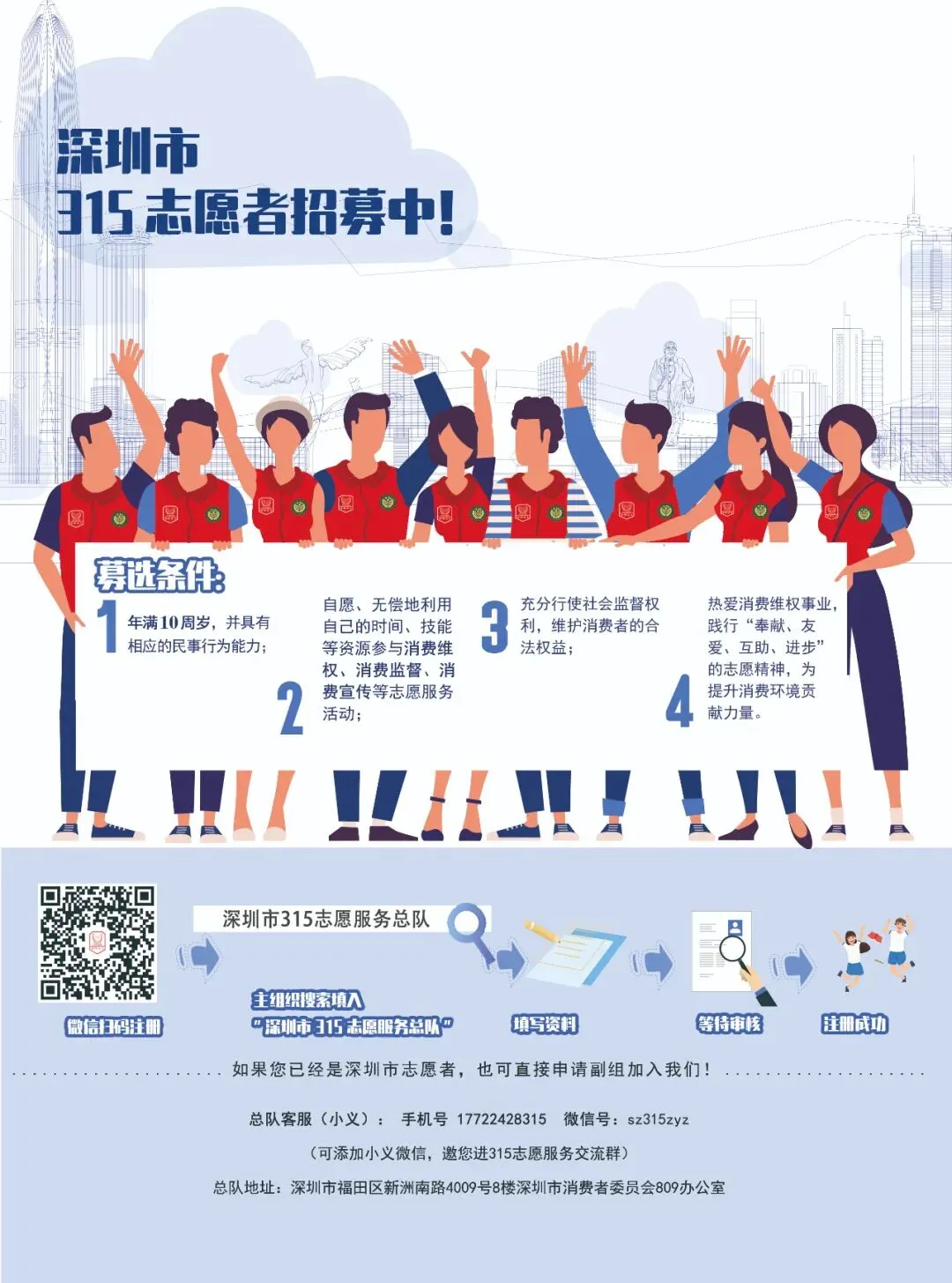 接下来,深圳市315志愿服务总队将在深圳市消委会的指导下,继续发挥示范引领作用,带领分队深入开展形式多样的消费宣传活动,打造具有深圳特色的315志愿服务模式和品牌,全力营造安全放心的消费环境,为我市放心消费环境建设和消费者权益保护事业贡献志愿力量!