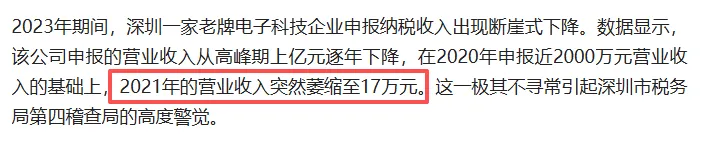 2023年,税务局的大数据系统报警了:一家行业龙头,营收一夜之间从2000万跌到17万?