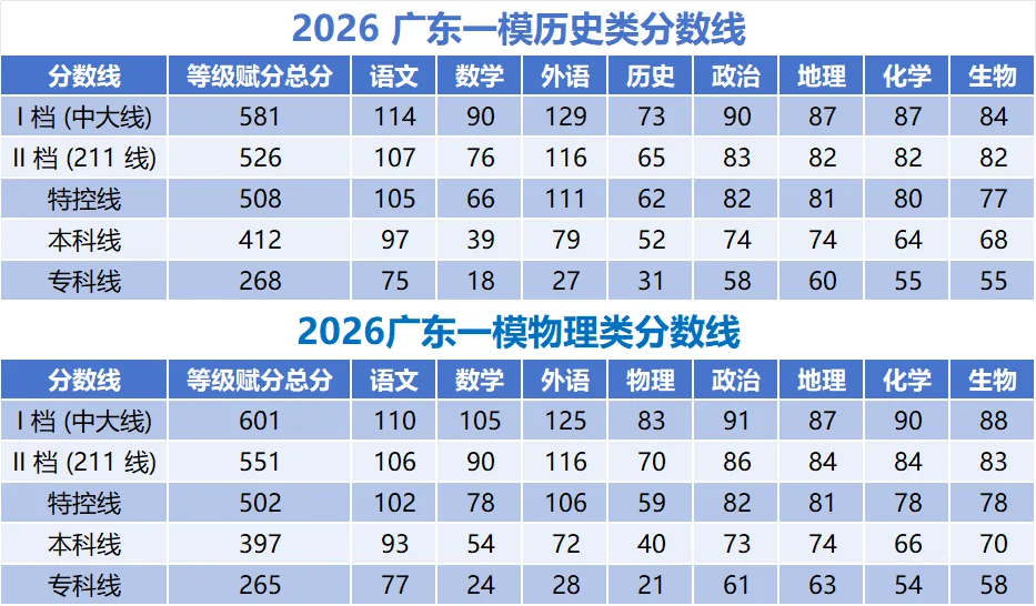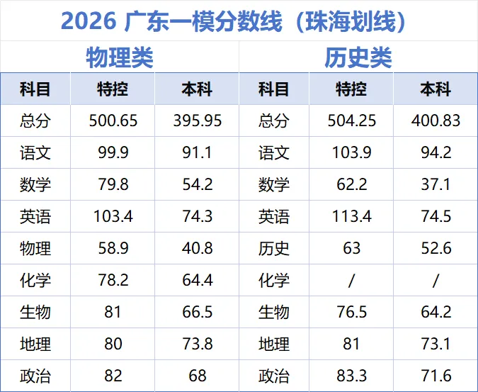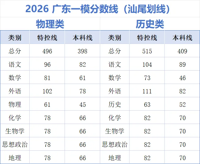 26年汕头一模平均分:物理类413.48分,历史类364.7分。2026大湾区一模(珠海、中山、江门、清远、阳江联考)实行统一划线,物理类特控线494分,历史类特控线513分。