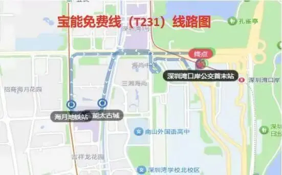 为解决短途接驳、商圈出行的民生痛点,优化南山区公共交通服务,宝能免费线(T231)于2026年4月1日正式开通。从此,深圳湾口岸、宝能太古城、海月地铁站之间,多了一条免费、便捷、高频次的绿色出行选择。