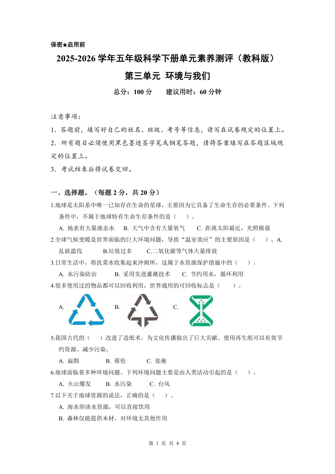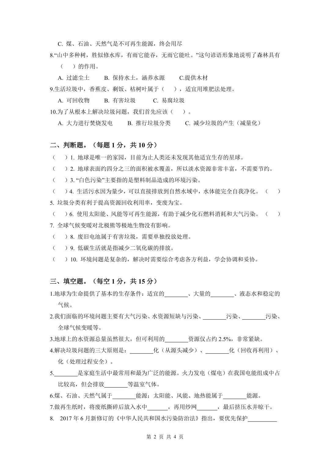 深圳六年级下册教科版科学第二单元测试卷测试卷