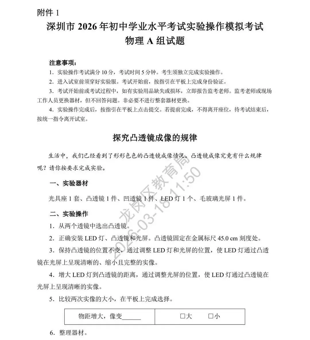>5月开考!2026深圳中考理化实验操作模拟考试演示视频!