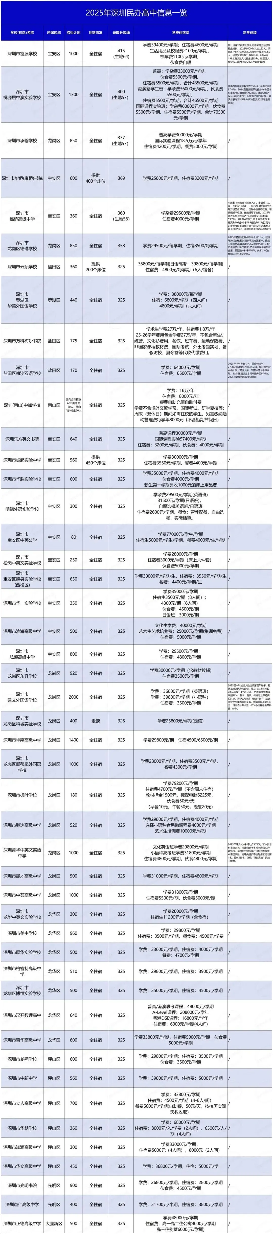 2025年深圳公办普高(不含布吉中学、美术学校,三高出国班)AC类住宿生最低录取分数线464分,D类住宿生最低录取分数线499分。民办高中稍微好点的,富源415分、中澳实验400分。