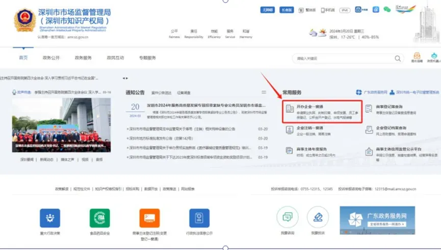 1、进入深圳市监局https://amr.sz.gov.cn/ 网站提交申请。