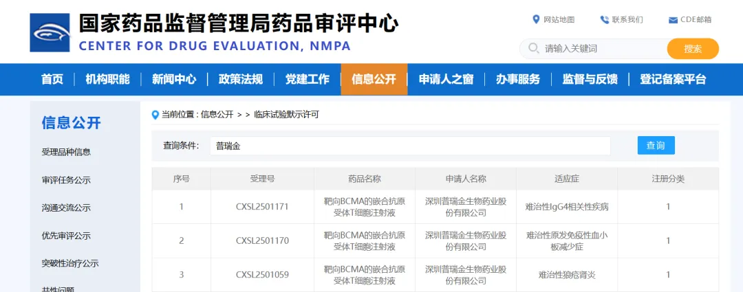 3月25日,普瑞金自主研发的靶向BCMA的嵌合抗原受体T细胞注射液再度收到国家药品监督管理局核准签发的临床试验批准通知书,该产品针对难治性IgG4相关性疾病和难治性原发免疫性血小板减少症两项新适应症临床试验申请同步获批。