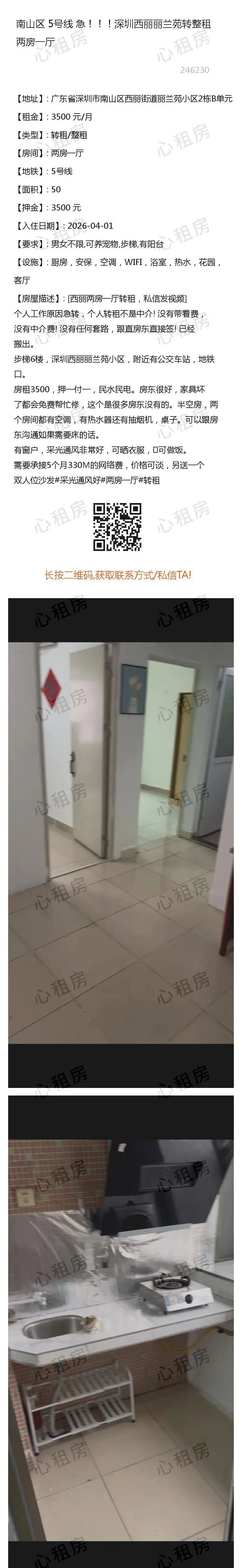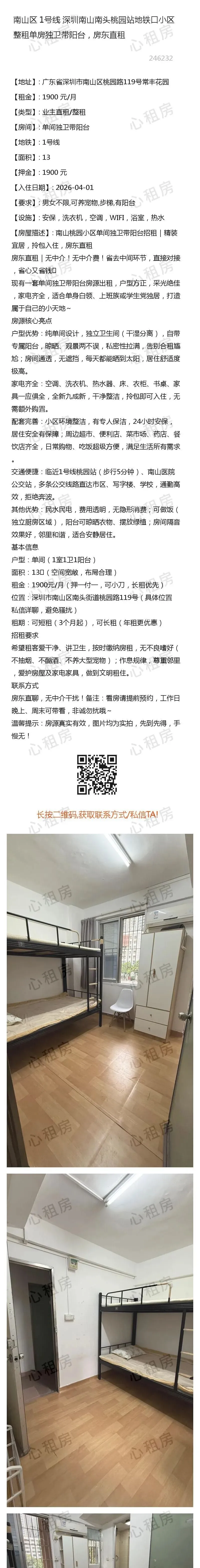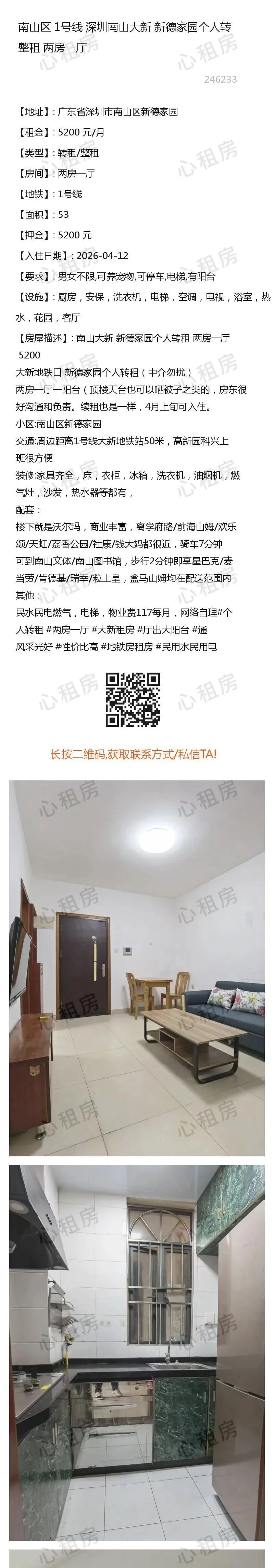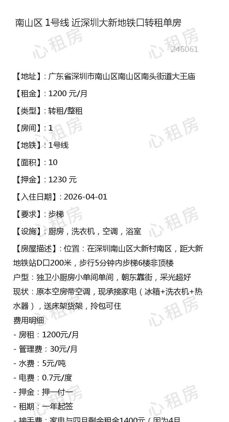 深圳租房【南山5则】房源①:1号线近深圳南山大新地铁口转租单房1200元/月;房源②:…