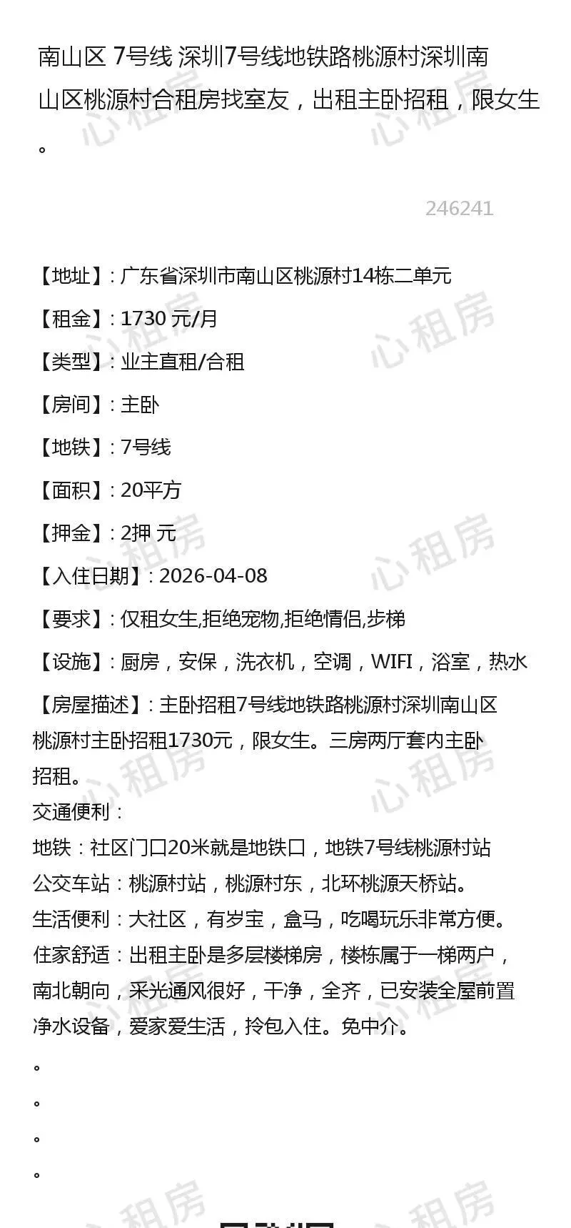 深圳租房黑房东找房子罗湖合找室友合租短租深租房科技园深大豆瓣南山租房地铁租房龙华新福田罗湖光明新区坪山新区大鹏南山豆瓣1、所有房源信息均由网友投稿,委托本公众号/心租房(homhere.cn)发布,房源的真实性、合法性由提供者负责。2、请务必核实双方身份信息(身份证)、房产权属(产权证明)、转租权利(租赁合同)等基本信息。3、请务必实地考察房源并确保与出租方提供的基本信息一致。4、切勿轻易支付定金、保证金、打赏等,建议签订《租赁合同》后再进行交易。5、双方在房屋租赁过程中产生的一切纠纷,均与本公众号/心租房(homhere.cn)无关。6、近期欺诈团伙在境外以相亲交友、租房、国际包裹等名义实施杀猪盘、诱导下载未知app等进行刷单返利等欺诈的行为较多,请先确认对方身份,保护个人隐私和财产安全。