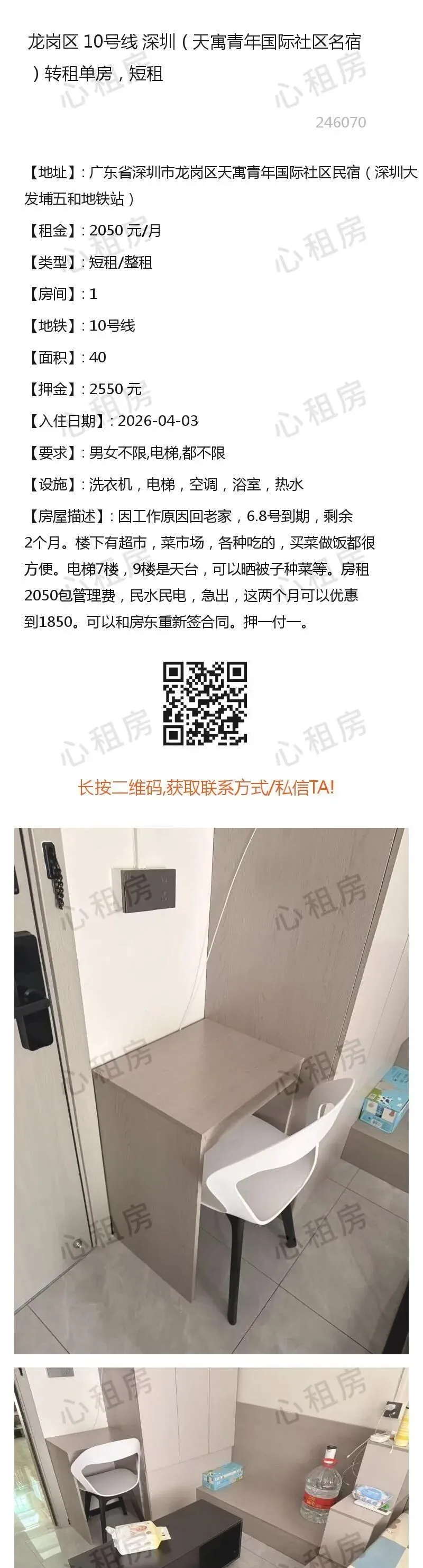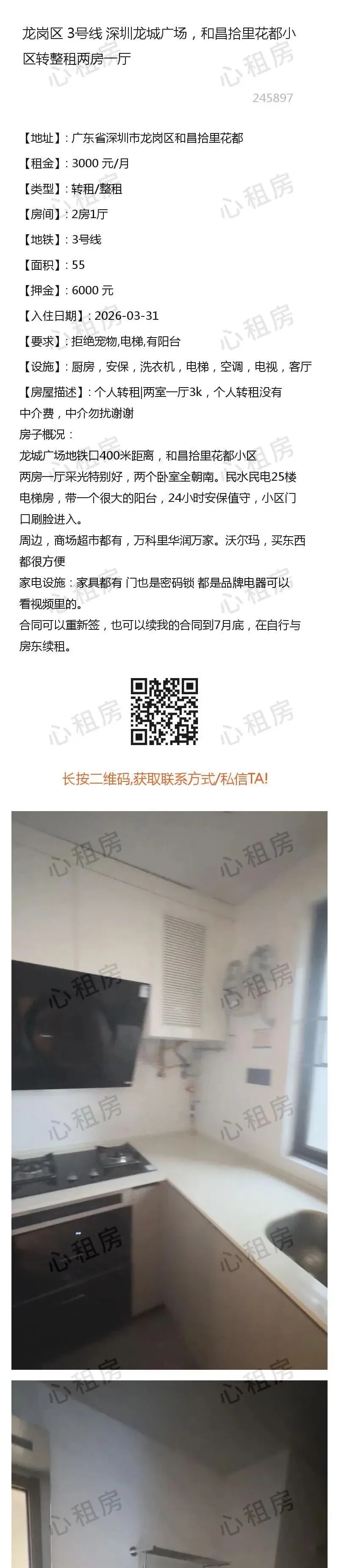 深圳租房【龙岗3则】房源①:10号线深圳龙岗转租单房2050元/月;房源②:…
