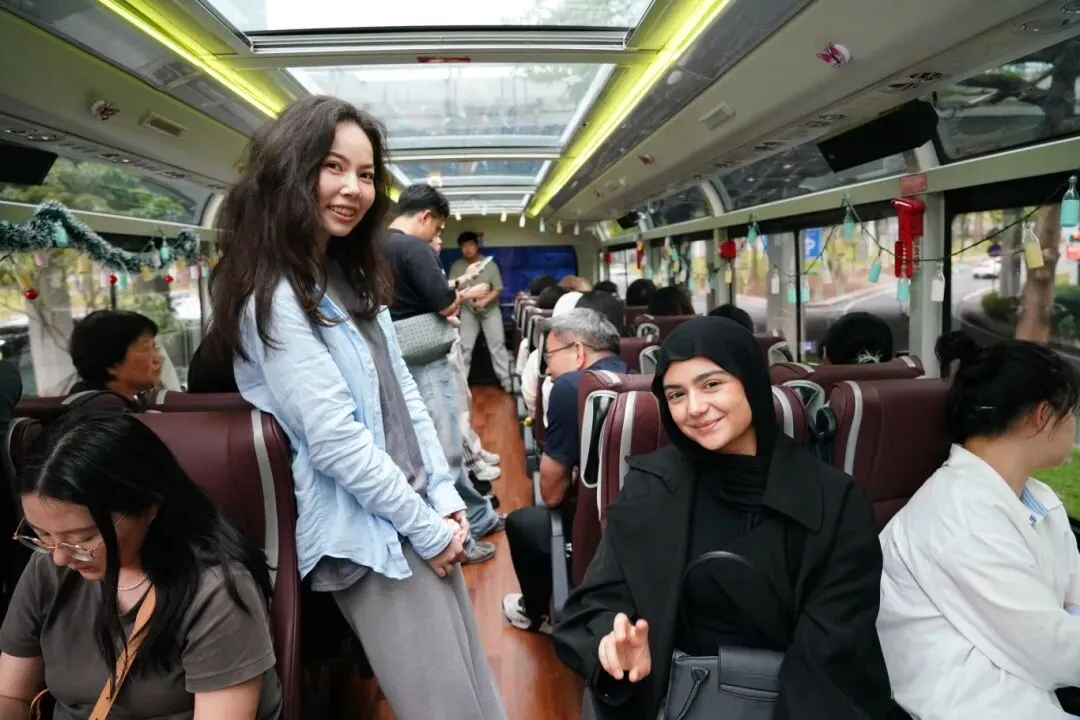 在车厢的另一角,两位刚在巴士上结识的外籍女孩也分享着她们的快乐。“这真的非常有趣。这不仅关乎旅程,而且我还能结交新朋友。”