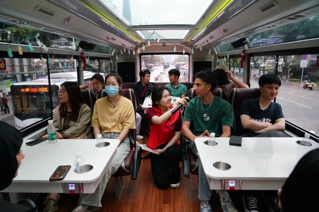 与传统观光巴士不同,“双语城市观光巴士”项目最鲜明的特点,不只是“看景”,更在于“交流”。
