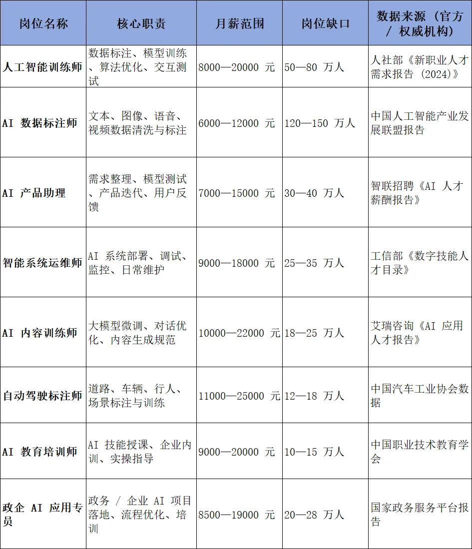 有意愿从事AI行业的人群,可参考以下就业方向和薪资水平(薪资仅供参考):