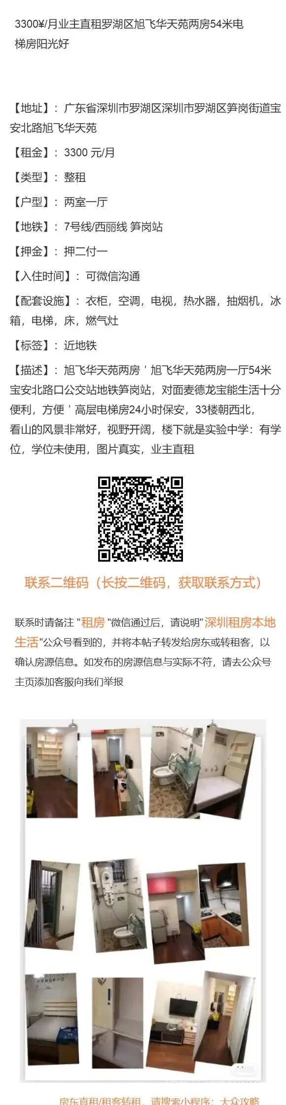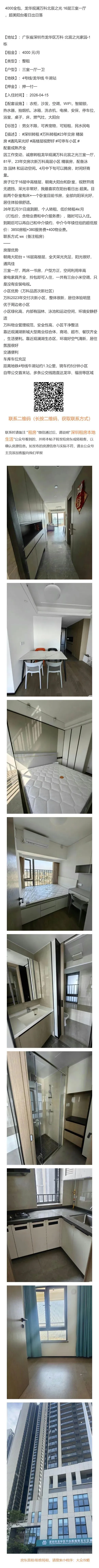 【深圳租房本地生活:免责申明】以上内容受用户委托发布,谢绝转载。房源信息的真实性、合法性由提供者负责,本公众号不声明或保证内容之正确性和可靠性,深圳租房需谨慎,请先核实出租人身份,仔细阅读租房合同,切勿轻易转账、交订金等,房屋出租过程中产生的一切问题,与本公众号无关。【深圳租房本地生活:特别申明】深圳租房本地生活没有任何线下业务人员,请勿轻信冒认我司线下工作人员及电话沟通人员,我司目前唯一对外沟通窗口为公众号主页客服微信:Hey_Beijinger