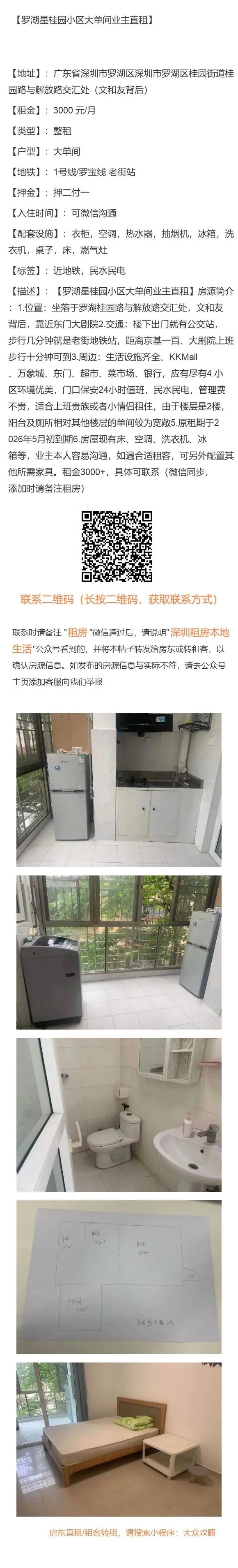 【罗湖星桂园小区大单间业主直租】