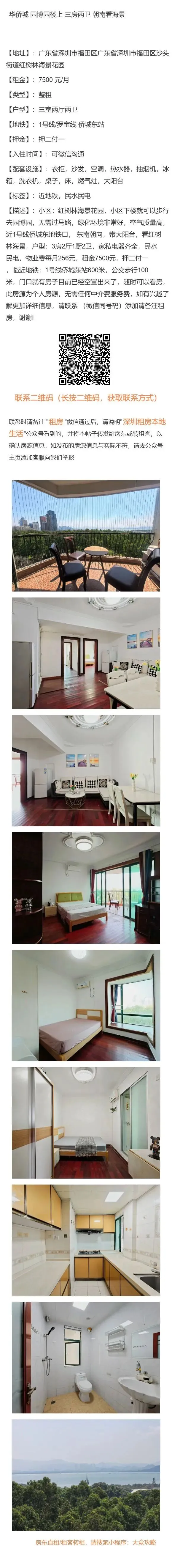 >>> 福田区 1号线/罗宝线 侨城东站 三室二厅整租7500元/月