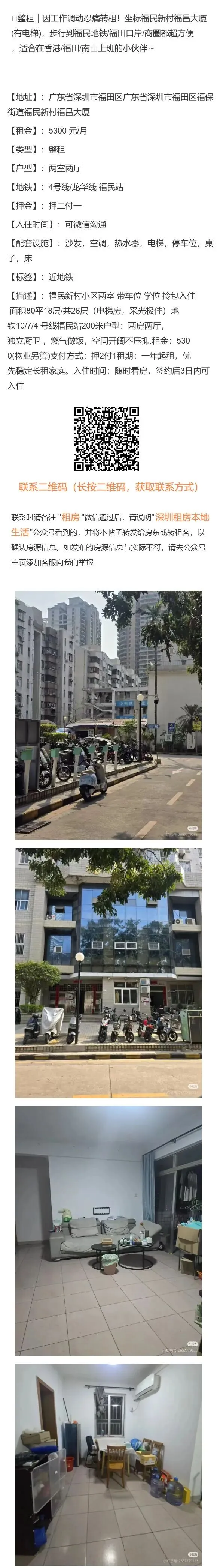 🍀整租|因工作调动忍痛转租!坐标福民新村福昌大厦(有电梯),步行到福民地铁/福田口岸/商圈都超方便,适合在香港/福田/南山上班的小伙伴~
