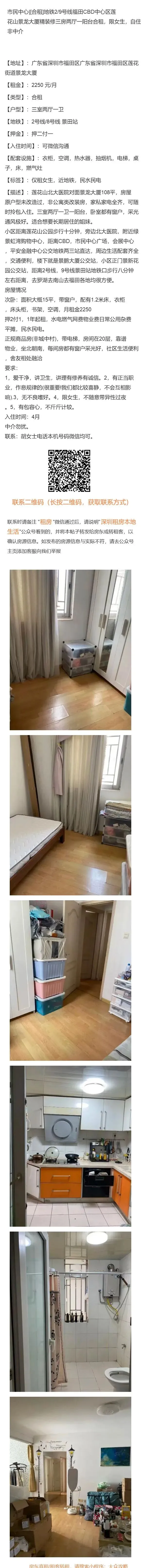 市民中心|[合租]地铁2/9号线福田CBD中心区莲花山景龙大厦精装修三房两厅一阳台合租,限女生,自住非中介
