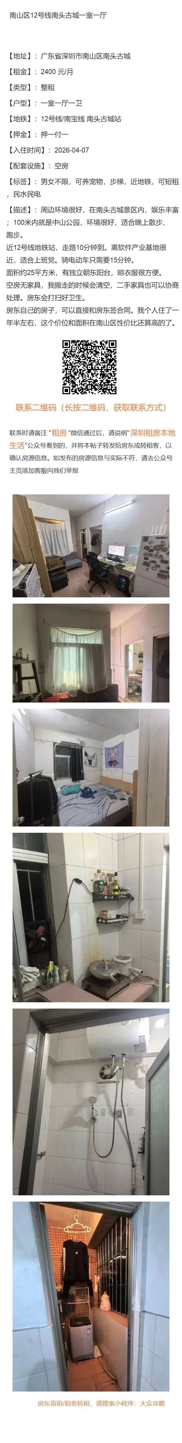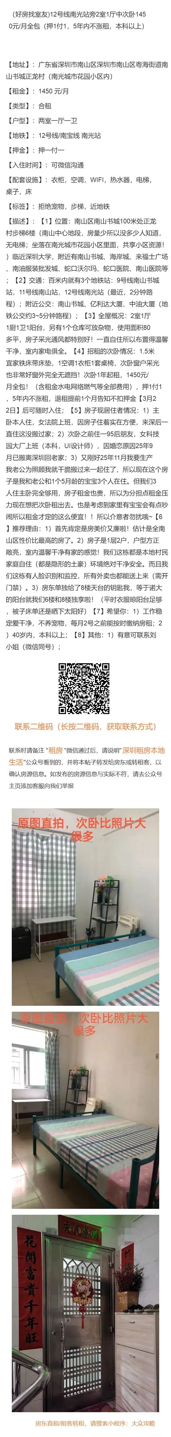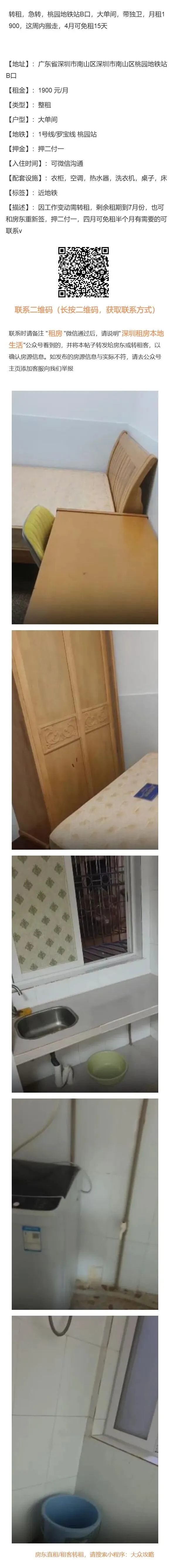 【深圳租房本地生活:免责申明】以上内容受用户委托发布,谢绝转载。房源信息的真实性、合法性由提供者负责,本公众号不声明或保证内容之正确性和可靠性,深圳租房需谨慎,请先核实出租人身份,仔细阅读租房合同,切勿轻易转账、交订金等,房屋出租过程中产生的一切问题,与本公众号无关。【深圳租房本地生活:特别申明】深圳租房本地生活没有任何线下业务人员,请勿轻信冒认我司线下工作人员及电话沟通人员,我司目前唯一对外沟通窗口为公众号主页客服微信:Hey_Beijinger