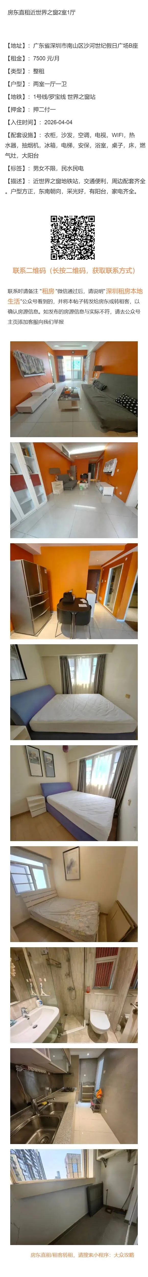 >>> 南山区 1号线/罗宝线 世界之窗站 二室一厅整租7500元/月