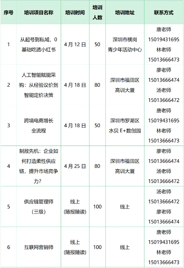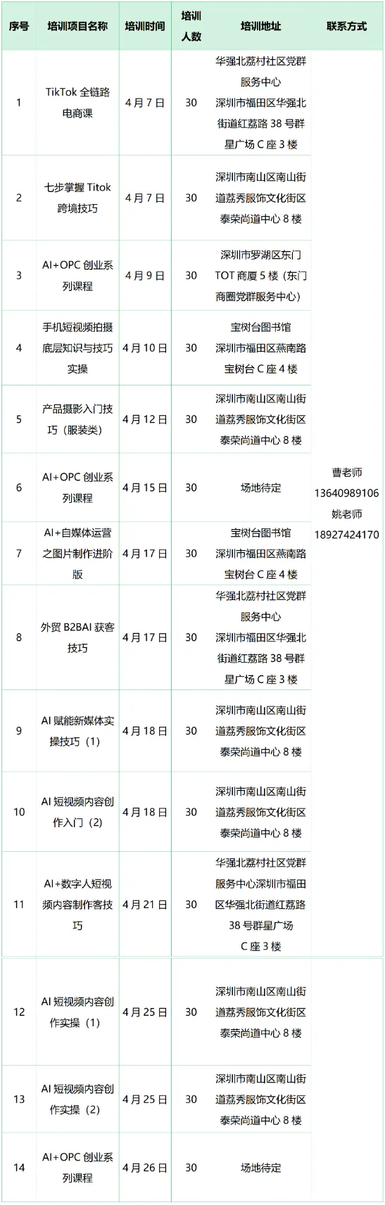 深圳人社,免费培训!4月课程表发布,2400+名额,等你来抢