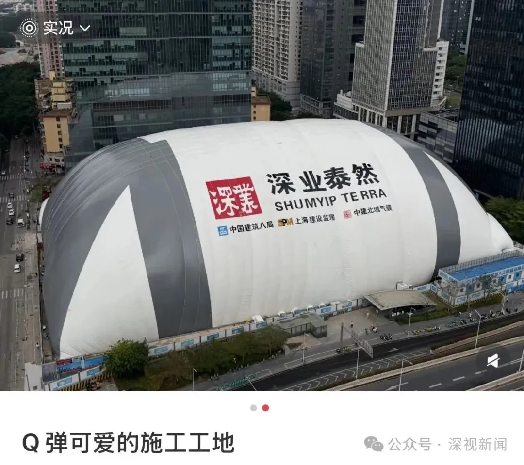 据了解,该气膜建筑属于车公庙泰然工业区城市更新项目,项目高度达40米、覆盖面积12780平方米,是华南地区最大单体气承式基坑气膜。