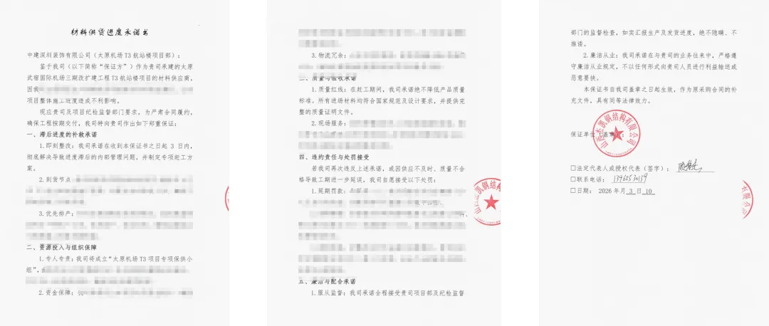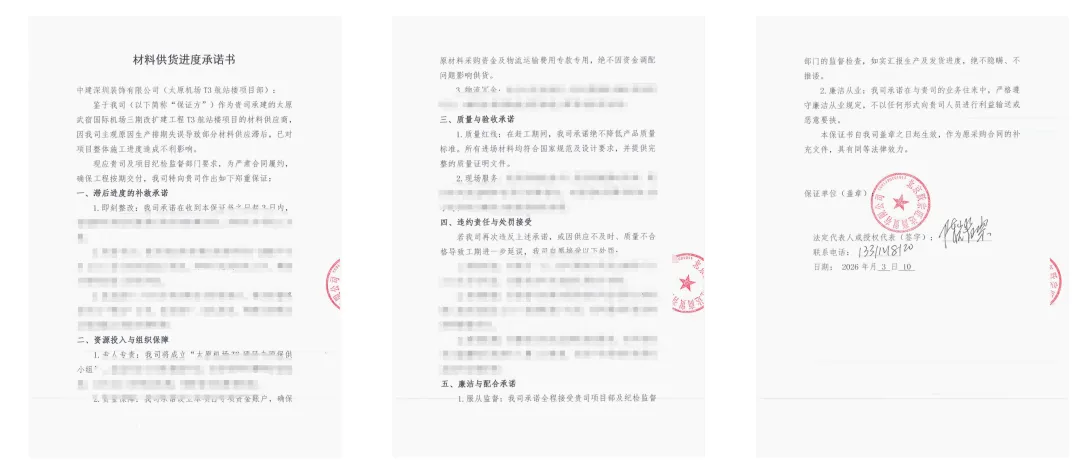 太原机场三期改扩建工程是山西省打造内陆地区对外开放新高地的“头号工程”,当前已进入精装修攻坚的“最后一公里”。深圳装饰北方分公司纪委响应项目业主单位山西航空产业集团2026年度安全及工程进度协调会议精神,创新监督模式,将纪检力量深度融入项目建设全链条,全力护航航站楼及交通换乘中心精装修工程。围绕项目今年“12·31”投运目标,分公司纪委锚定关键节点、下沉一线服务、精准追责问责,重点从三个维度推进监督工作走深走实。