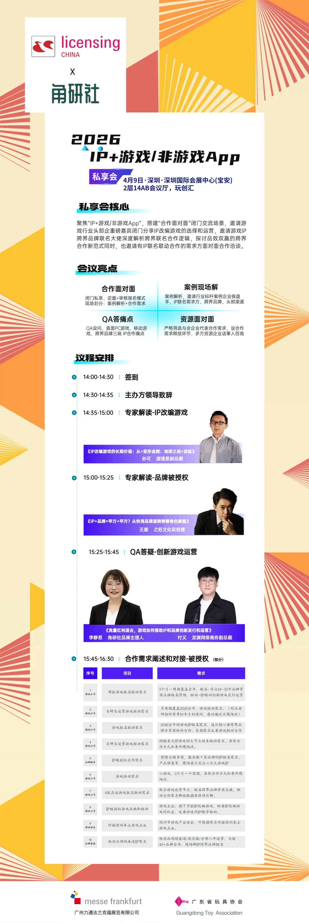4月9日深圳,2026“IP+游戏/非游戏App"私享会议程来啦!|角研社