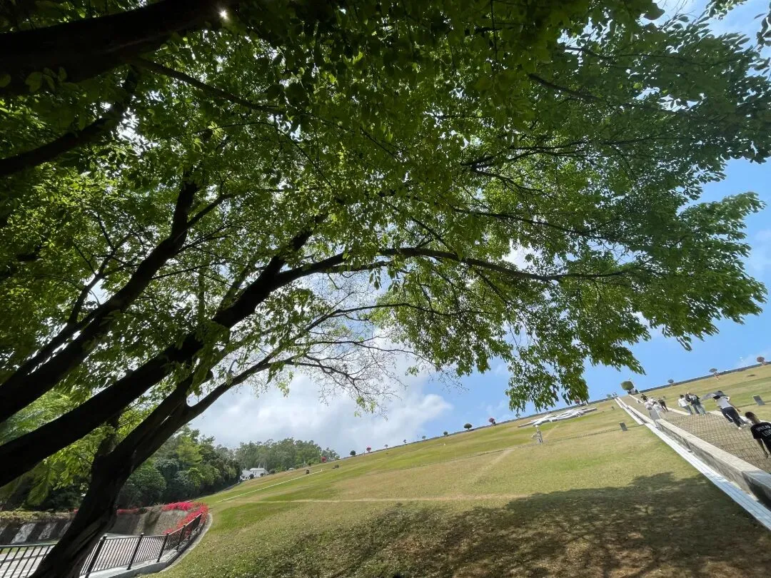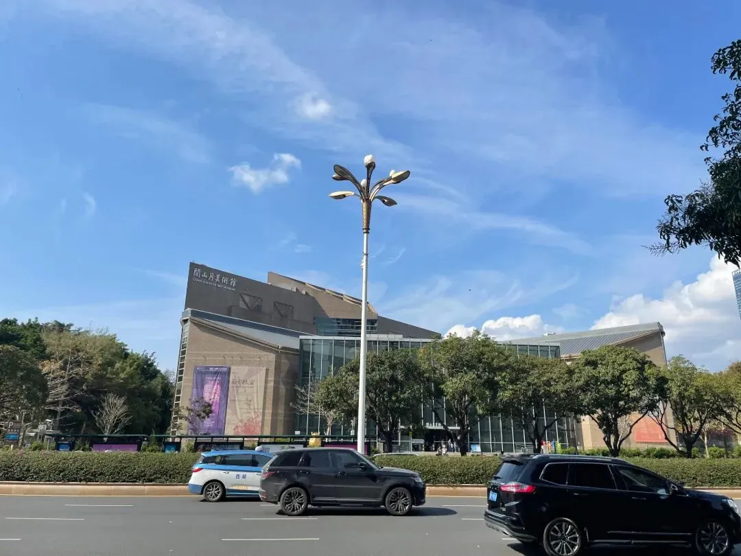 美术馆旁,便是绿意盎然的莲花山公园。阳光下,不少市民铺着垫子席地而坐,露营、闲谈、享受周末时光,一派悠然自在。可惜行程紧凑,只能将这份闲适留待下次,先赴一场与艺术的约会。