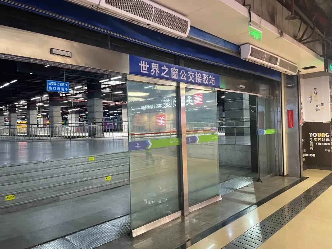 徒步结束,便直奔地铁前往下一个目的地。准备出站,途经“世界之窗公交接驳站”。