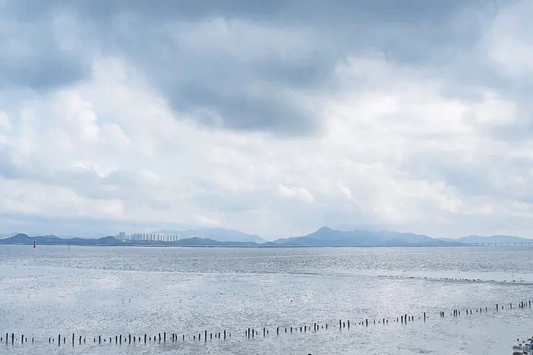 极目远眺,海面开阔无垠,对岸山峦、流云、碧海交织成画。一湾海水,隔开两岸烟火,却隔不断同一片风光。