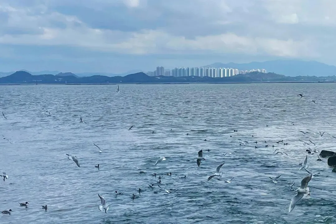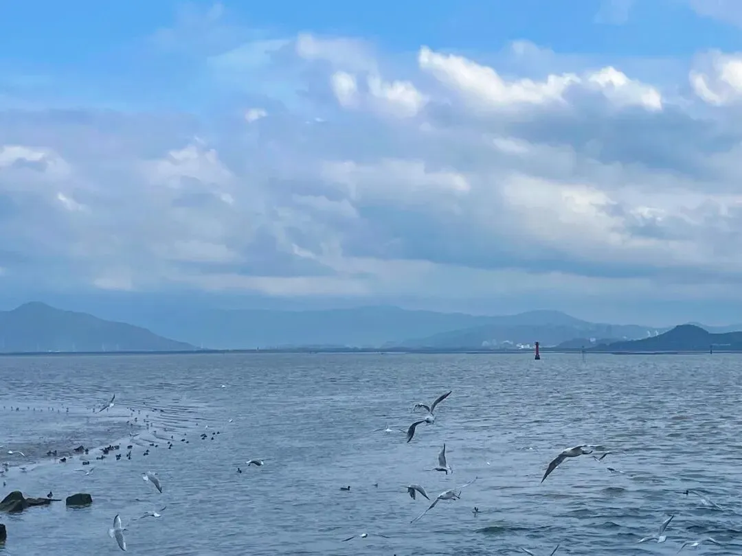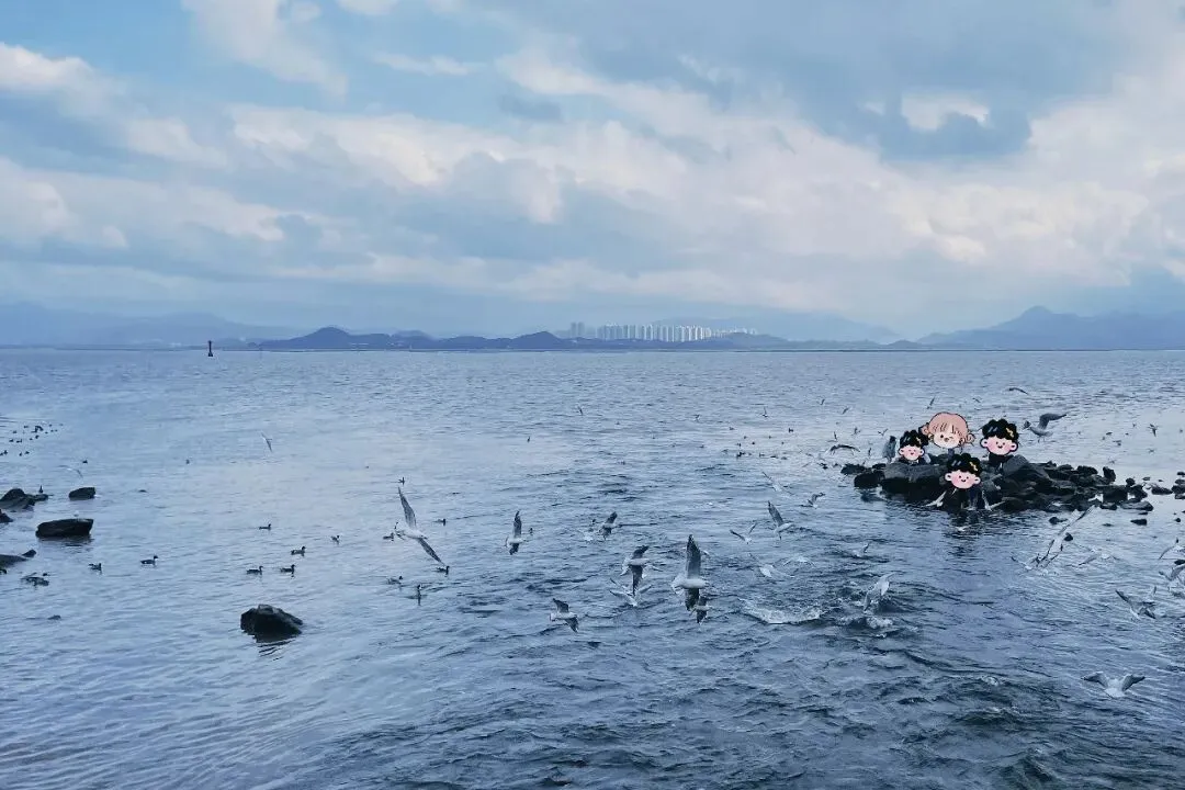 下午三点,岸边早已站满等候的人群,大家都是为海鸥而来。成群的海鸥在海面盘旋、掠过,翅膀划破湛蓝水面,人与鸟共享一片海湾,无需言语,只剩治愈。此刻我的手机至少拍了一百张海鸥的照片!(๑•̀ㅂ•́)و✧