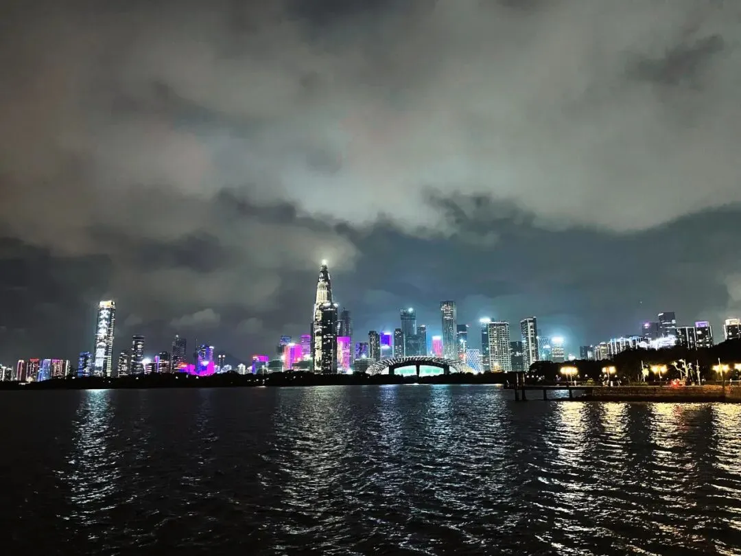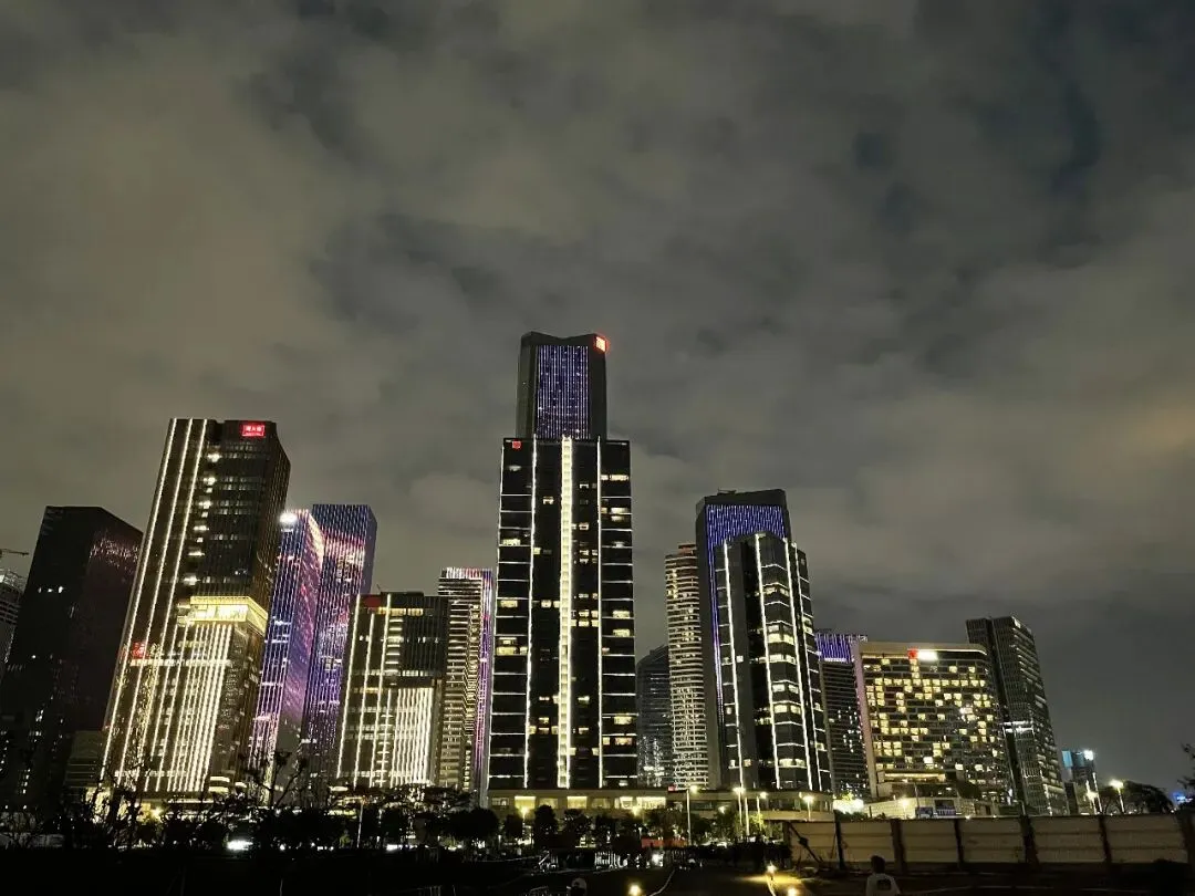 远处深圳湾万象城、春笋及后海建筑群灯火璀璨,高级感拉满,不喧嚣、不浮躁,却自带黄金时代的电影感。凭栏远眺,满城灯火如画卷铺展,运气好时,还能邂逅一场震撼的灯光秀。
