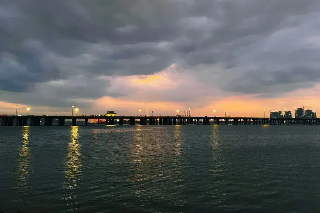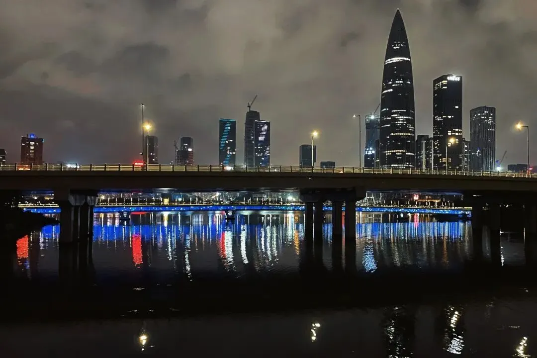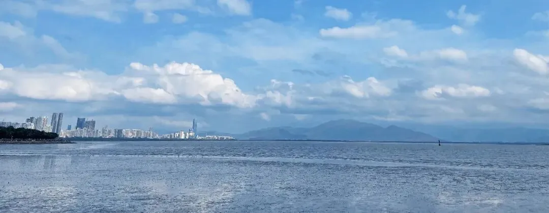 不远处,深圳湾大桥凌空飞架,连接深圳南山与香港元朗,既是交通动脉,也是湾区地标,在海面上勾勒出磅礴的轮廓。