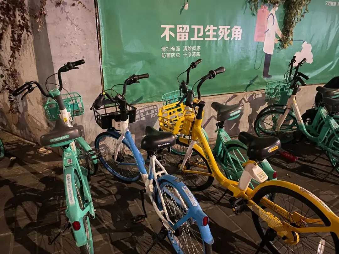 晚上9点半开始返程,10点半在地铁出站口处扫了一辆共享自行车。