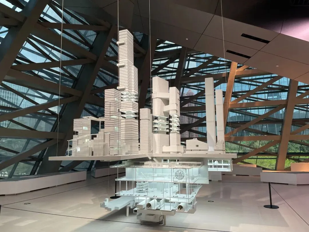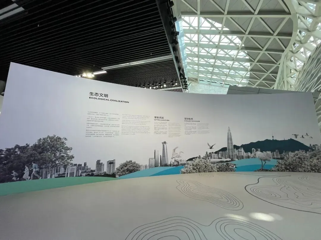 三楼的城市规划展厅,科技感拉满:1:7500比例的巨型城市沙盘,搭配沉浸式LED光影秀,将深圳的生态文明、战略定位、城市格局一一呈现。