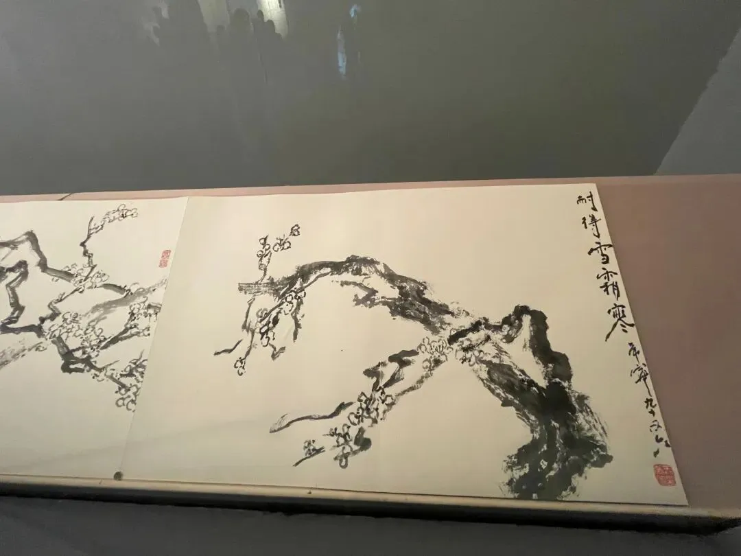 走上二楼,画风一转,步入温润雅致的笔墨天地。这里展出的是一南一北两位艺术大家——关山月与于希宁的花鸟画专题。