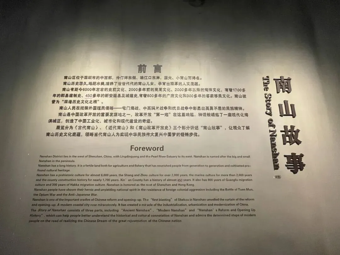 常设展厅《南山故事》,分为古代南山、近代南山、南山改革开放史三部分,娓娓道来这片土地的前世今生。