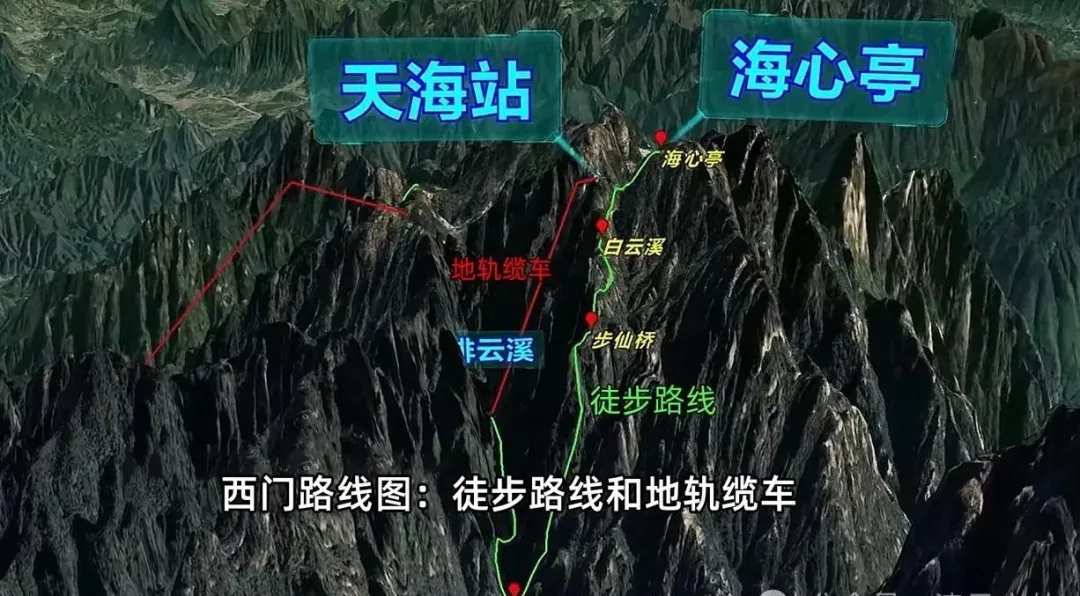 本次上山选择人少的西门路线:适合户外徒步爱好者,从西大门乘坐摆渡车到达钓桥庵,从这里徒步上山,大概需要4小时,中途有南瓜桥、天鹅桥、三溪口、步仙桥、白云溪、海心亭等景点。