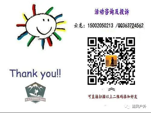 1、亲们请一定注意:户外线路产品由于需要提前订车和安排住宿。故不认可退改规定的亲请勿报名!2、活动集合前5天(含5天)由于个人情况有事去不了的,不退定金。3、可以自行找人顶替您的位置,并通知我们更换人员名单。4、活动前如遇不可抗力因素(天气,道路等)导致活动不能正常进行,活动费用将全部退还,但不承担除此之外的其它损失;活动中因不可抗力因素(天气,道路等)导致行程无法正常进行的,领队有权视情况对行程进行调整,行程变更后增加的费用由队员自行承担,未发生的费用恕不退还;5、因队员个人原因(生病,体力不支等)导致的下撤和救援费用由本人承担。证件:身份证(学生证、教师证、军官证等证件)、银行卡部分现金。衣服:泳衣裤,长袖衣裤,鞋子最好穿登山鞋或运动鞋,方便拖鞋,换洗内衣裤、袜子等。器材:手机(充电宝)、相机(充电器、备用电池)、手电筒、防晒:太阳镜、帽子、魔术头巾、手套,防晒霜,润唇膏以保护皮肤。【活动须知】1、报名参加活动者必须是年满18岁、具有完全民事行为能力的自然人,如为18岁以下必须由监护人带领方可参加活动。2、本活动为偏向自助性质的户外活动,而非旅行社组团的保姆式旅游,活动全程请每位参与者遵循自助、互助、环保、公平的原则。3、活动参加者务必要确保自己身体是健康的,不得隐瞒病症。4、在此次活动中如果由于活动参加者的行为而导致了第三方的财产损失或个人伤害可以通过协商或者法律途径解决。