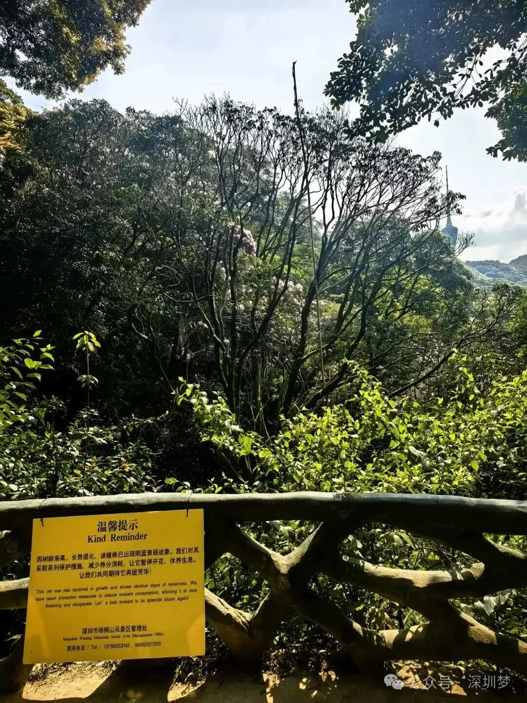 还有一件是深圳梧桐山的百年毛棉杜鹃王,往年此时早已繁花满枝,成为春日花海的绝对焦点,今年却稀花疏枝,不少网友忧心它的健康,也满心期待能再睹它盛放的盛景。而深圳市梧桐山风景区管理处的选择同样坚定:因树龄渐高、长势退化,该植株已出现明显衰弱迹象,管理处已对其采取系列保护措施,通过减少养分消耗,让它暂停开花、休养生息,共同期待它再绽芳华。