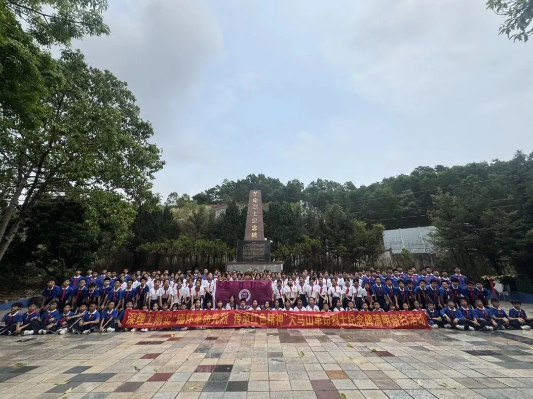 人间四月,春雨润思;青山巍巍,丰碑不朽。在清明这一寄缅追远、慎终追远的时节,深圳理工大学附属光明实验学校以虔敬之心,组织七年级学子与小学少先队员代表共赴大马山革命烈士纪念碑,开展“缅怀革命先烈,传承红色精神”清明祭扫活动。以纸花寄哀思,以誓言敬忠魂,以赤心承薪火,让英雄精神穿越岁月,在少年心中生根、拔节、生长。本次清明祭扫活动经精心组织筹备,进一步筑牢了全体师生缅怀英魂、传承使命的思想基础。