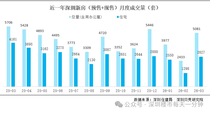 网签方面,据深圳贝壳研究院统计,3月深圳新房成交5081套,环比增长109%,其中住宅2827套,环比增长118%。3月是传统楼市销售旺季,新房市场快速回暖,售楼处人气显著回升。值得关注的是,深圳湾顶豪项目澐玺南区开盘热销,再次印证了深圳高端市场的需求韧性。