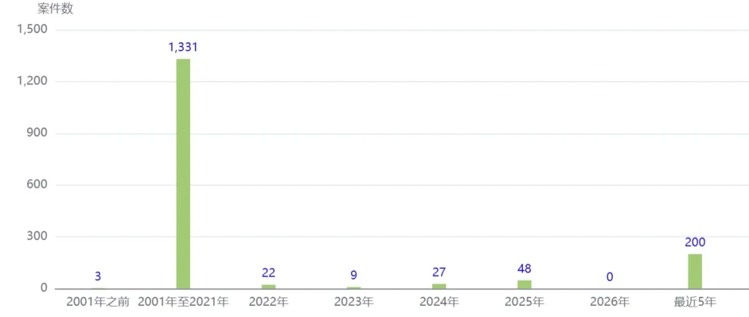 1.案件数量:年均40件,2021年成峰值
