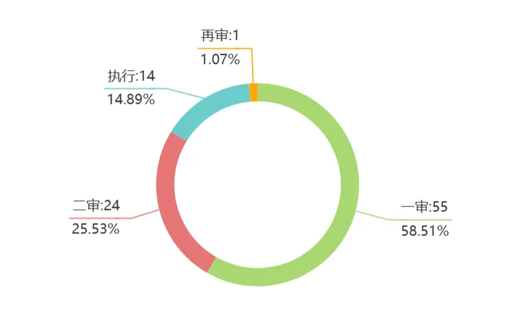 程序分布:一审案件149件(74.5%)、二审31件(15.5%)、执行19件(9.5%),说明多数纠纷在一审阶段就能解决