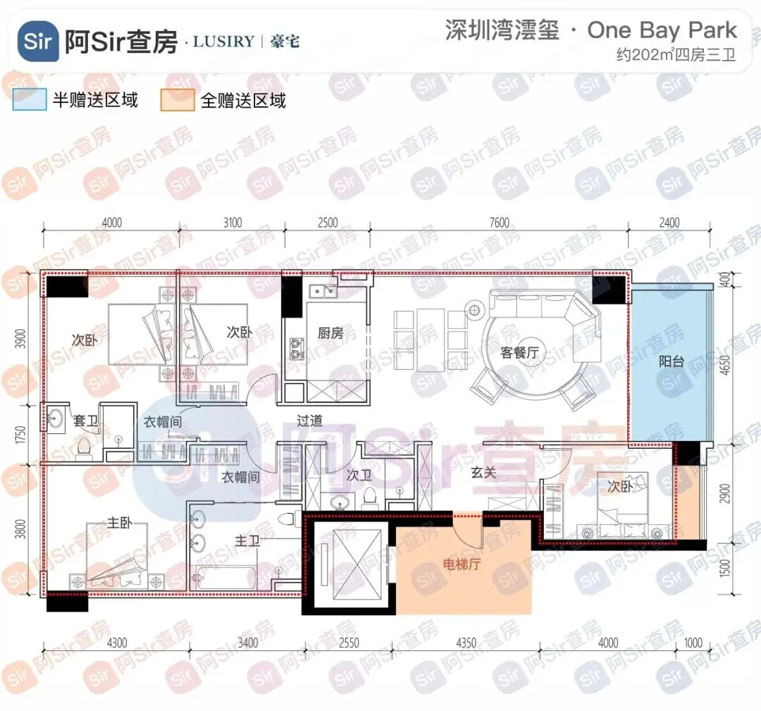 项目层高都是3.6米、都设双电梯入户,是深圳住宅天花板。