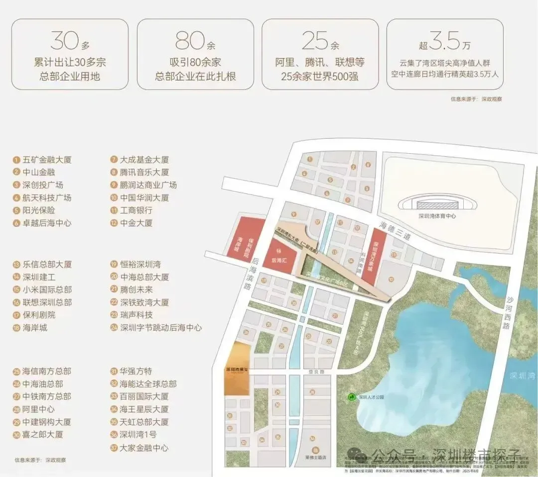 稀缺区位:项目坐落于深圳湾后海CBD总部基地核心,与华润“春笋”为邻,周边聚集数十家世界500强与企业总部,是深圳湾当前乃至未来都极具稀缺性的住宅用地。