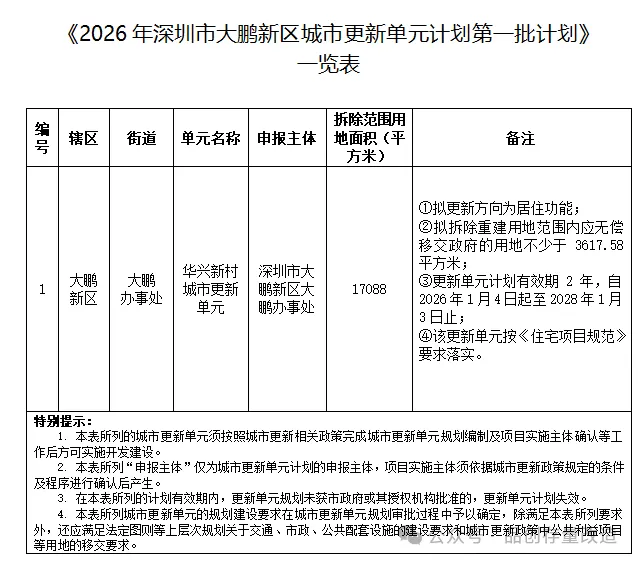 在新政一系列有力的盘活措施下,即便旧住宅区改造项目必须严格落实《住宅项目规范》,仍具备盘活的可能性。罗湖三九花园与大鹏华兴新村城市更新项目的计划立项,或预示着深圳旧住宅区更新正从 “观望” 转向 “可推进”,从 “高成本博弈” 转向 “可价值盘活”。未来,类似华兴新村这样的项目案例将越来越多,更多此前受规限的旧住宅区项目,有望在新政策的加持下重新启动,深圳旧改推进节奏也将稳步回暖。