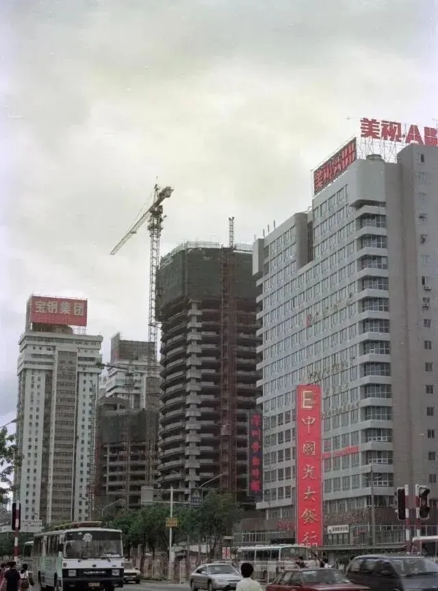 这一张,左边还是水泥骨头的半拉子工地,右头就是刚冒出来写字楼的队形,牌子的标语越贴越高,“中国光大银行”“美利A大厦”,哪家企业开在这些大厦里都觉得自己先人一步。